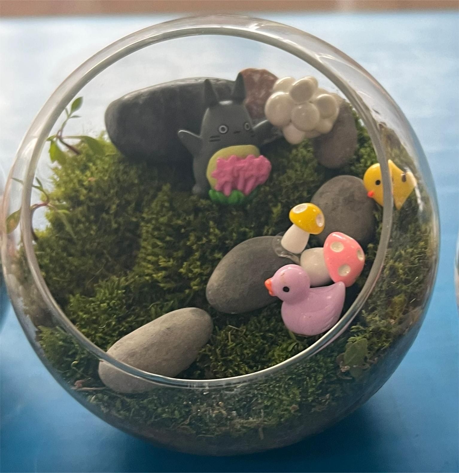 放完最后一个配件,英语(师范)专业2022级班的胡心蕊拍下自己制作的生态缸,并在朋友圈发布,配文“采菊东篱下,悠然见南山。”“学习或者生活中压力很大的时候,我就会置身自然,感受新鲜的空气与宁静的环境。”她坦言,制作的过程轻松又愉快,让自己暂时忘却烦恼,沉下心来感受自然的独特魅力。