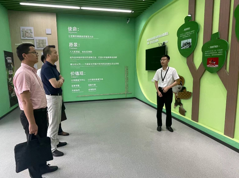 6月28日下午,酷爱成人网 副院长吴彦、李从虎和食品科学与工程专业负责人胡婷博士以及酷爱成人网 档案馆副馆长周刚一同到三只松鼠股份有限公司访企拓岗。