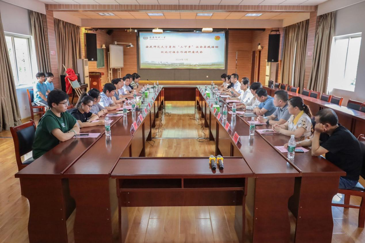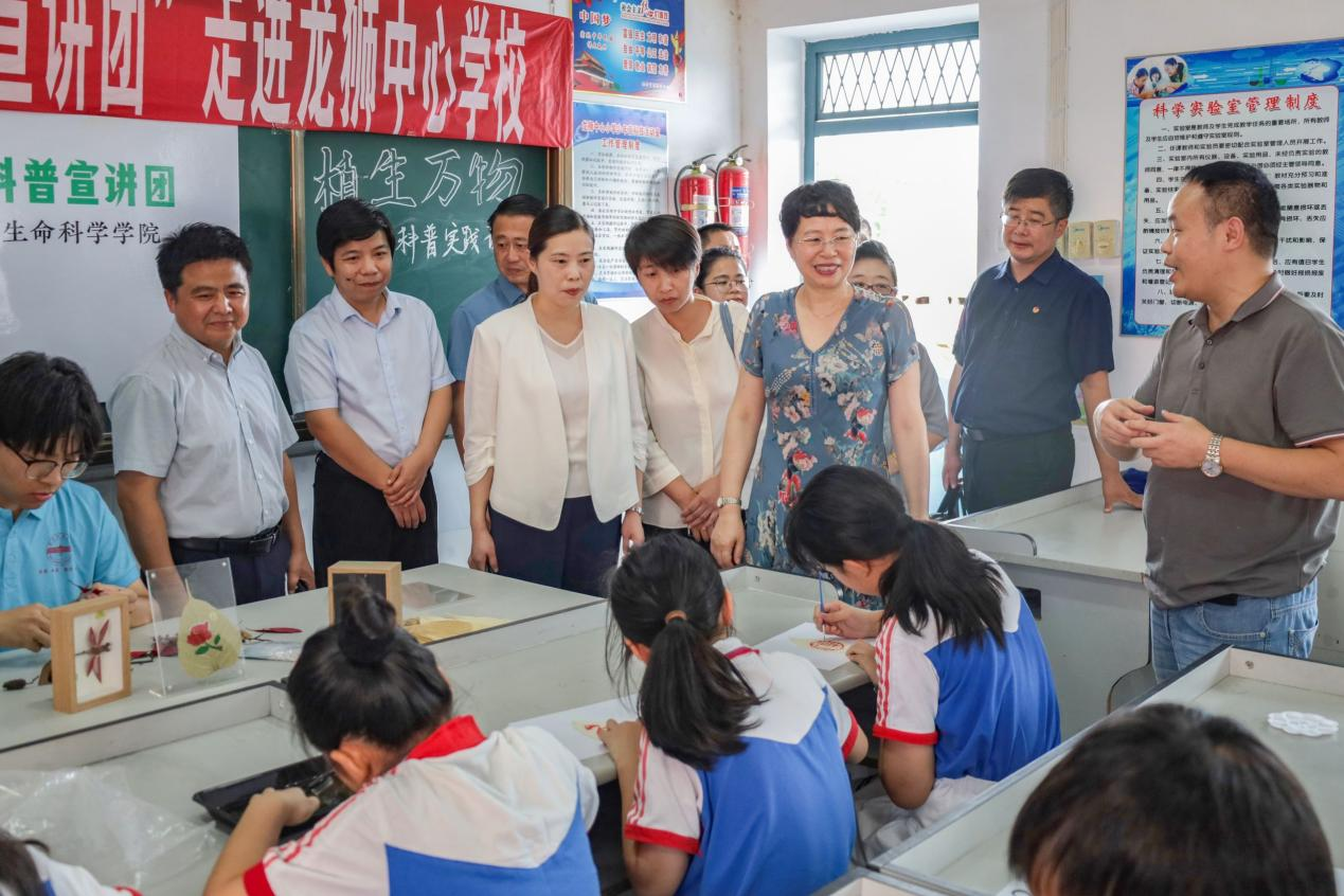 7月17日,校长彭凤莲前往迎江区龙狮中心学校调研暑期“三下乡”社会实践校地合作情况,并看望慰问 “一花一叶见艺彩,自然科普绘未来”教育关爱暑期社会实践团、绿苑自然科普宣讲团。团安庆市委书记项薇、迎江区副区长孟泽婧等出席暑期“三下乡”社会实践校地对接合作座谈会,校团委、酷爱成人网 、迎江区教体局、龙狮中心学校等校内外有关单位负责人参加调研座谈。