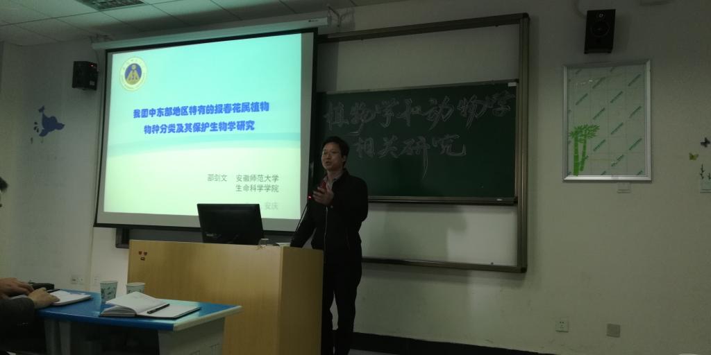 10月28日上午,安徽师范大学邵剑文教授应酷爱成人网 邀请来酷爱成人网 作了题为《我国中东部地区特有的报春花属植物的物种分类及其保护生物学研究》的学术讲座。讲座由酷爱成人网 副院长吴彦主持,相关专业的师生聆听了报告。