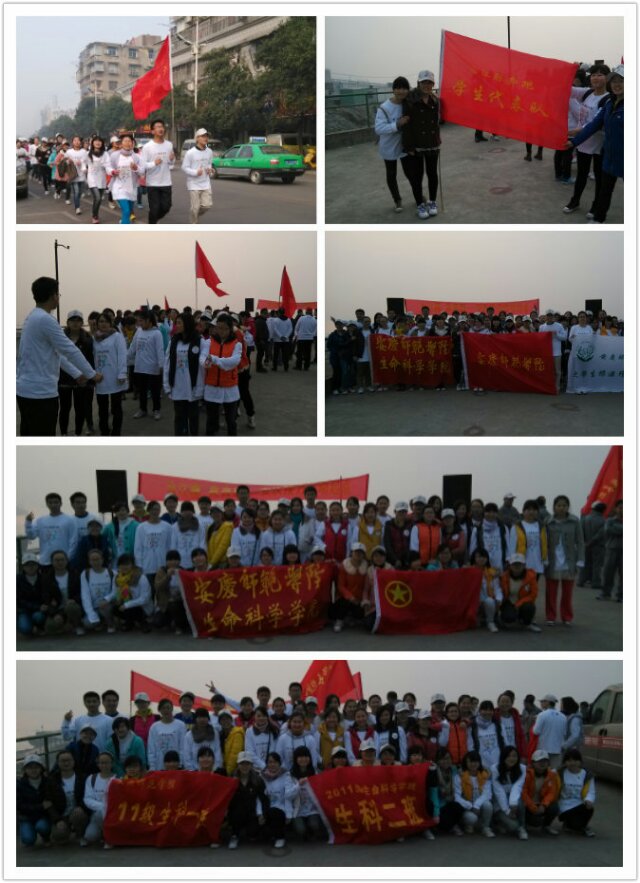 12月4日上午,由世界自然基金会(WWF)、武汉白鱀豚保护基金会(WBCF)主办,安庆市农委,安庆师范学院团委承办的在长江中下游开展“为江豚来奔跑—2013长跑接力”安庆段接力活动,在安庆市长江江豚保护区长江干堤正式举办。黄石长跑队,安庆渔政长跑队,安庆师范学院长跑队,安庆渔民长跑队,省市有关新闻媒体记者等共计200余人到场,酷爱成人网 团员志愿者50余人作为学校代表队参加了本次长跑宣传活动。