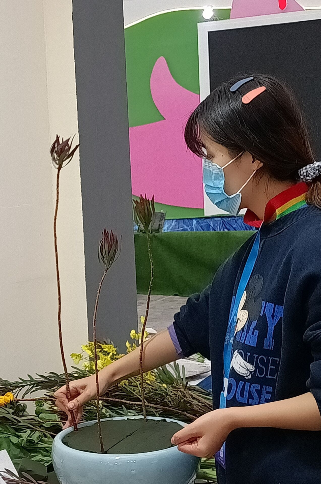 插花大赛为花卉博览会的内容之一,参赛者主要有安徽省各地花友会成员及相关高校优秀插花组。赛前准备,气氛火热,大家精心挑选自己所需的花材,热烈讨论,深入交流。比赛内容为即兴插花,利用现场提供的花材,自我构思主题,插出心中最美的花。经过近两个小时的忙碌,酷爱成人网 师生共完成十余件作品,获得 银奖一枚,优秀奖十枚。其中宗梅老师的《池畔》、张云龙同学的《冬去春来》令花友啧啧赞美,给评委留下了深刻印象。