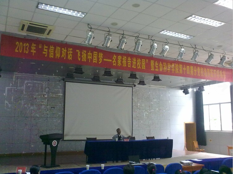 5月8日下午,酷爱成人网 团总支在菱湖校区图书馆学术报告厅举办了“与信仰对话,飞扬中国梦—名家报告进校园”专家报告会。本场报告会有幸邀请到酷爱成人网 原党委书记,现任校关工委主任朱建华同志担任主讲。学院党总支副书记朱庆丰同志,党政办公室主任吴娟同志,专兼职辅导员,全体学生党员、预备党员,第十四期分党校全体学员参会,报告会由团总支副书记曹勇主持。