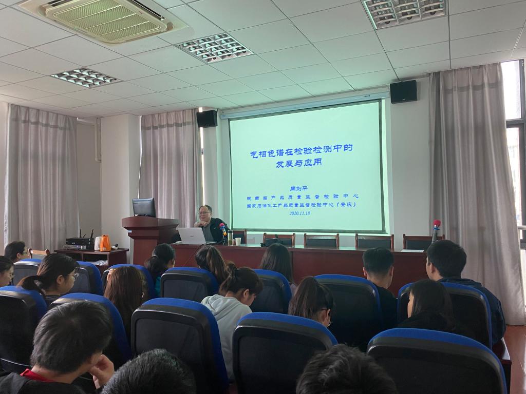 11月18日下午2:30,皖西南产品质量监督检验中心高级工程师周剑平在龙山校区G楼202学术报告厅作了题为“气相色谱在检验检测中的发展与应用”的学术讲座。酷爱成人网 全体研究生、动植物检疫专业本科生和部分教师聆听了报告。报告由酷爱成人网 穆丹博士主持。