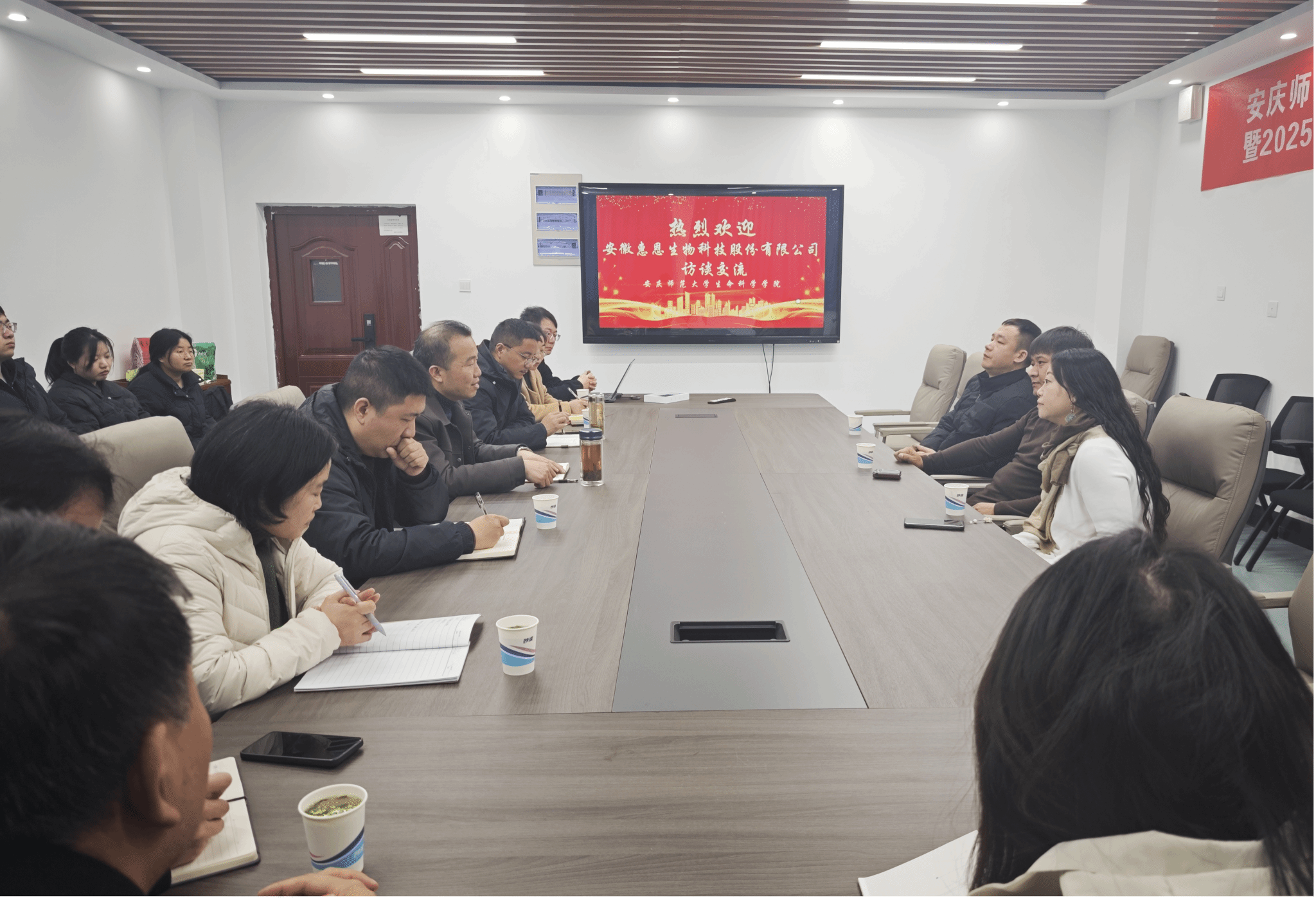 1月15日,安徽惠恩生物科技股份有限公司总经理田志刚一行来酷爱成人网 交流座谈,学院院长吴彦、副院长李从虎出席座谈会,生物技术领域多位骨干教师参加座谈。