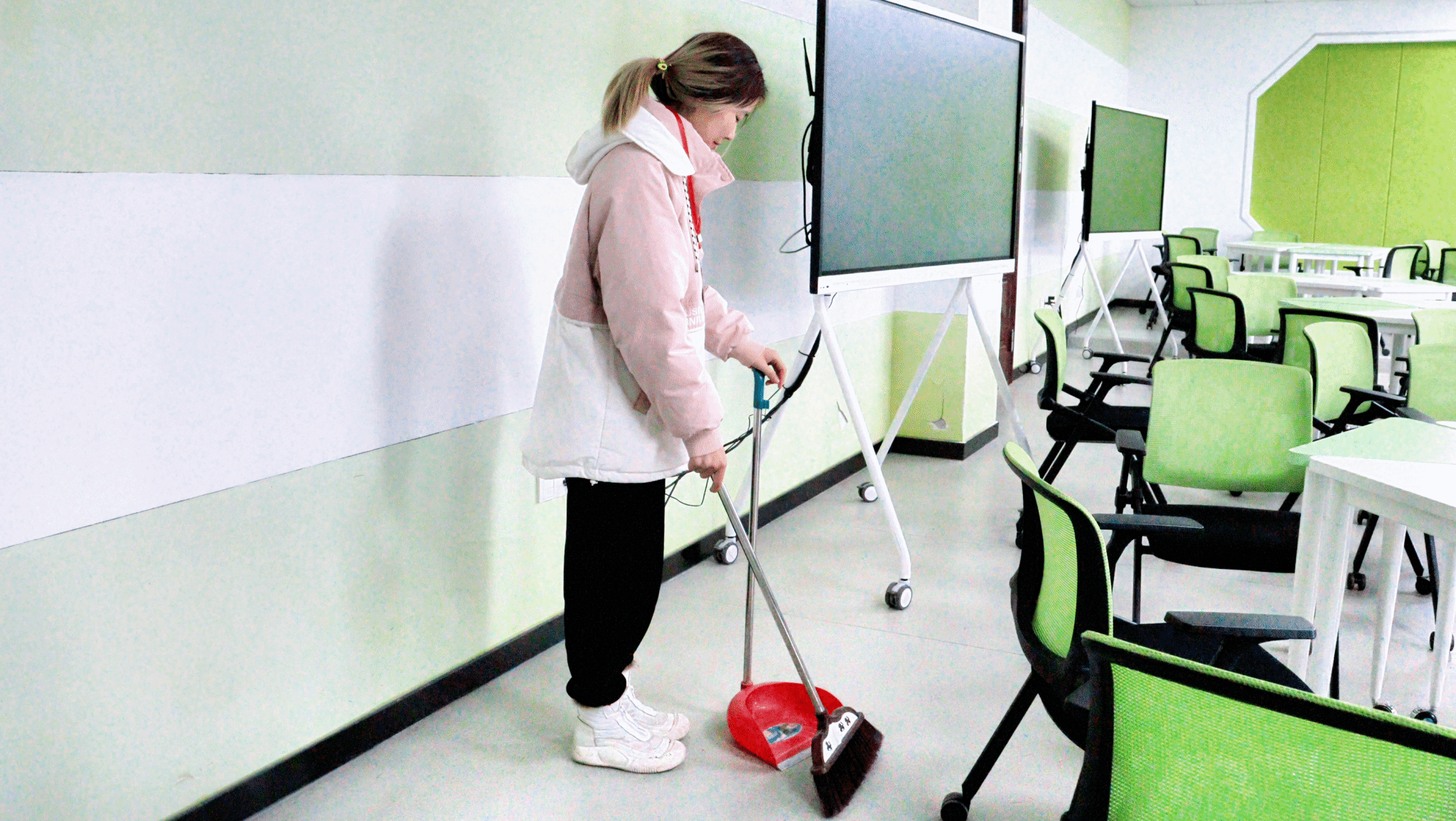 与主题创作活动同步,“净一方校园,暖一片心田”校园清洁专项行动在教学楼群有序启动。学院绿叶志愿服务队联合心理健康中心,组织志愿者们分组行动、分工协作,聚焦教学楼楼道、楼梯、走廊等公共区域,开展全方位、深层次的保洁工作。志愿者们手持清洁工具,细致清扫地面垃圾、拖洗顽固污渍,重点对楼道转角、窗台下方、消防栓周边等易被忽视的卫生死角进行专项清理,不放过任何一处细节。他们以认真负责的态度、脚踏实地的行动,清理校园环境、美化校园风貌,为全校师生打造了干净整洁、舒适有序的学习与通行空间,用实际行动诠释了“奉献、友爱、互助、进步”的志愿服务精神,让雷锋精神在躬身劳动的实践中变得可感可触、生动鲜活。