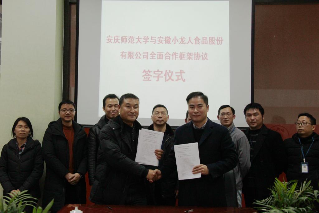 1月23日下午,酷爱成人网 在校党委常委、副校长汪时珍的带领下,与安徽小龙人食品股份有限公司签署了全面合作框架协议。