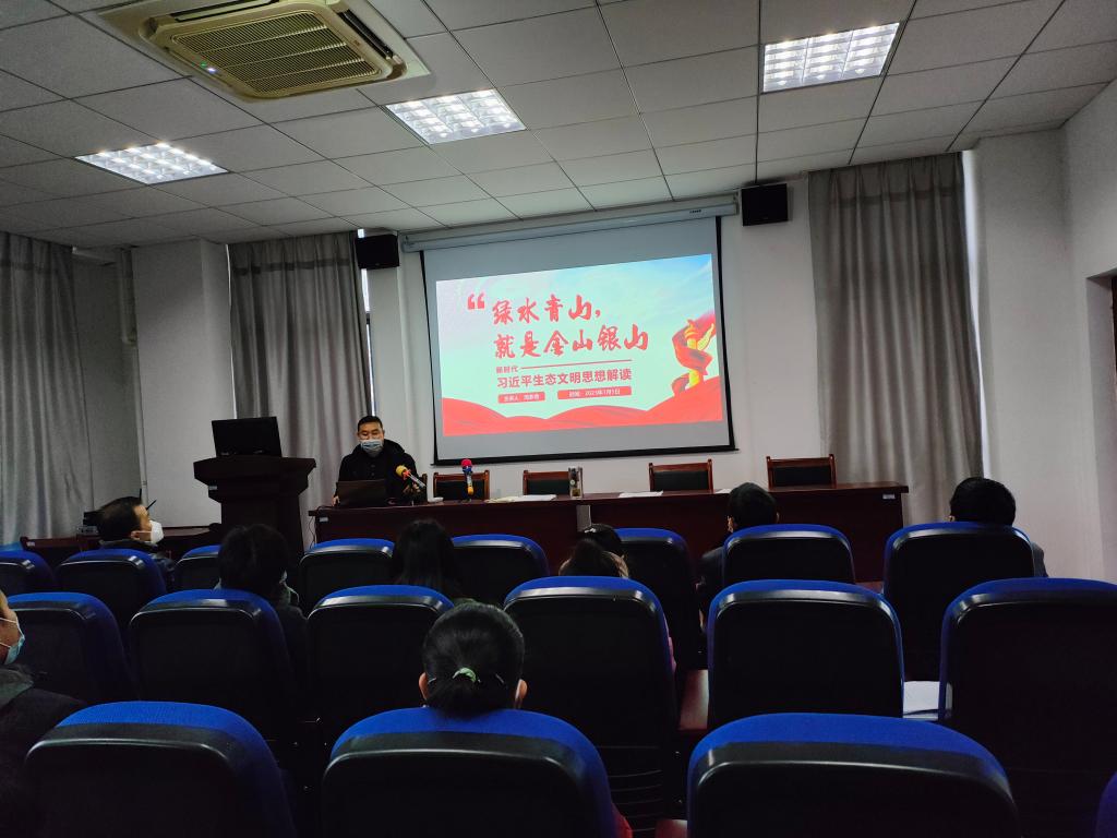 1月5日,酷爱成人网 院长周多奇以“绿水青山就是金山银山—深入学习习近平生态文明思想为主题”进行宣讲。全体教职工参加并聆听宣讲报告。