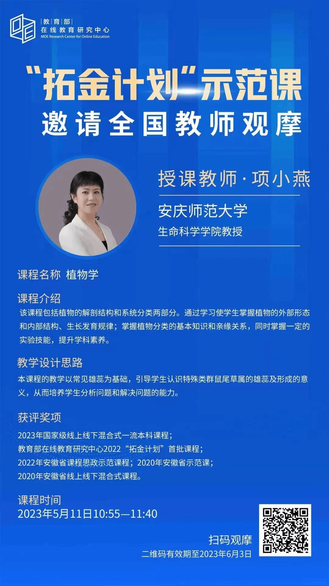 本着以学生为中心的理念,项小燕教授课程团队借助中国慕课大学平台和雨课堂教学平台开展《植物学》课程的线上线下混合式教学。通过“理论、实验、实践和学科竞赛”相结合的方式进一步达到人才培养目标的。在团队的共同努力下,项小燕教授团队主讲的《植物学》课程获批第二批国家级线上线下混合式一流本科课程及2022年首批教育部在线教育研究中心“拓金计划”课程。此次直播意在推广国家级金课建设及应用的优秀经验,大力拓展国家级金课的示范引领效应,助力优质教学模式的相互借鉴,广泛开展智慧教学经验交流,培育更多优质课程,进一步提升人才培养质量。(撰稿、摄影:项小燕; 审核:吴彦)