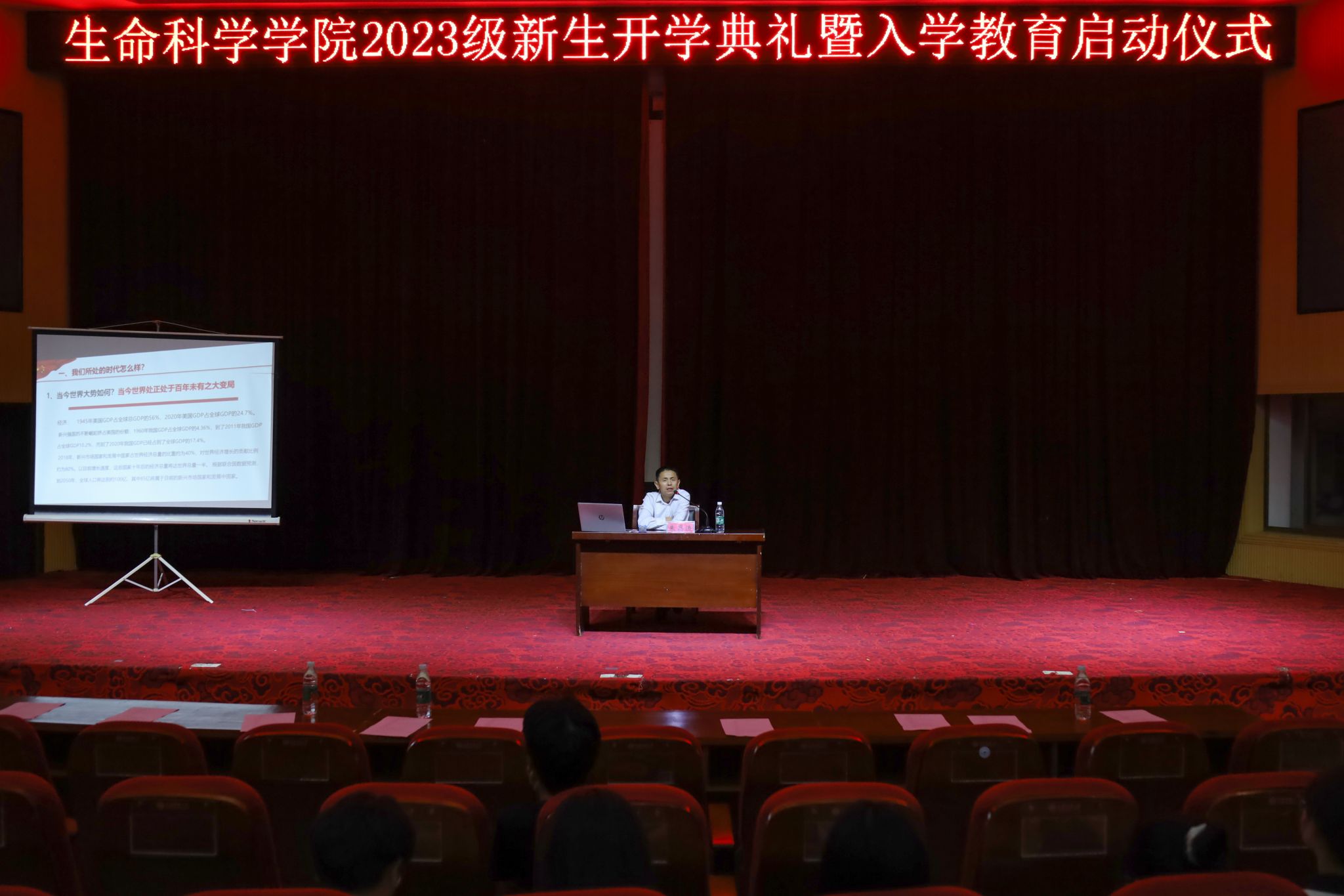 党委书记朱昌流从当今时代背景入手,带领全体新生学习了解了世界、国家、本省、本校的发展历程和现状,详细介绍了酷爱成人网 的办学历史和办学水平。朱昌流结合自身的生活经历和教学经验,为新生肩负时代担当指明了方向。他强调,新生应铭记、践行“敬敷世范、勤学笃行”的校训,在今后的学习实践中做到“三修四成”;他指出,新生应在坚定理想信念中不断锤炼品德修为,在安庆师大发挥青春魅力。