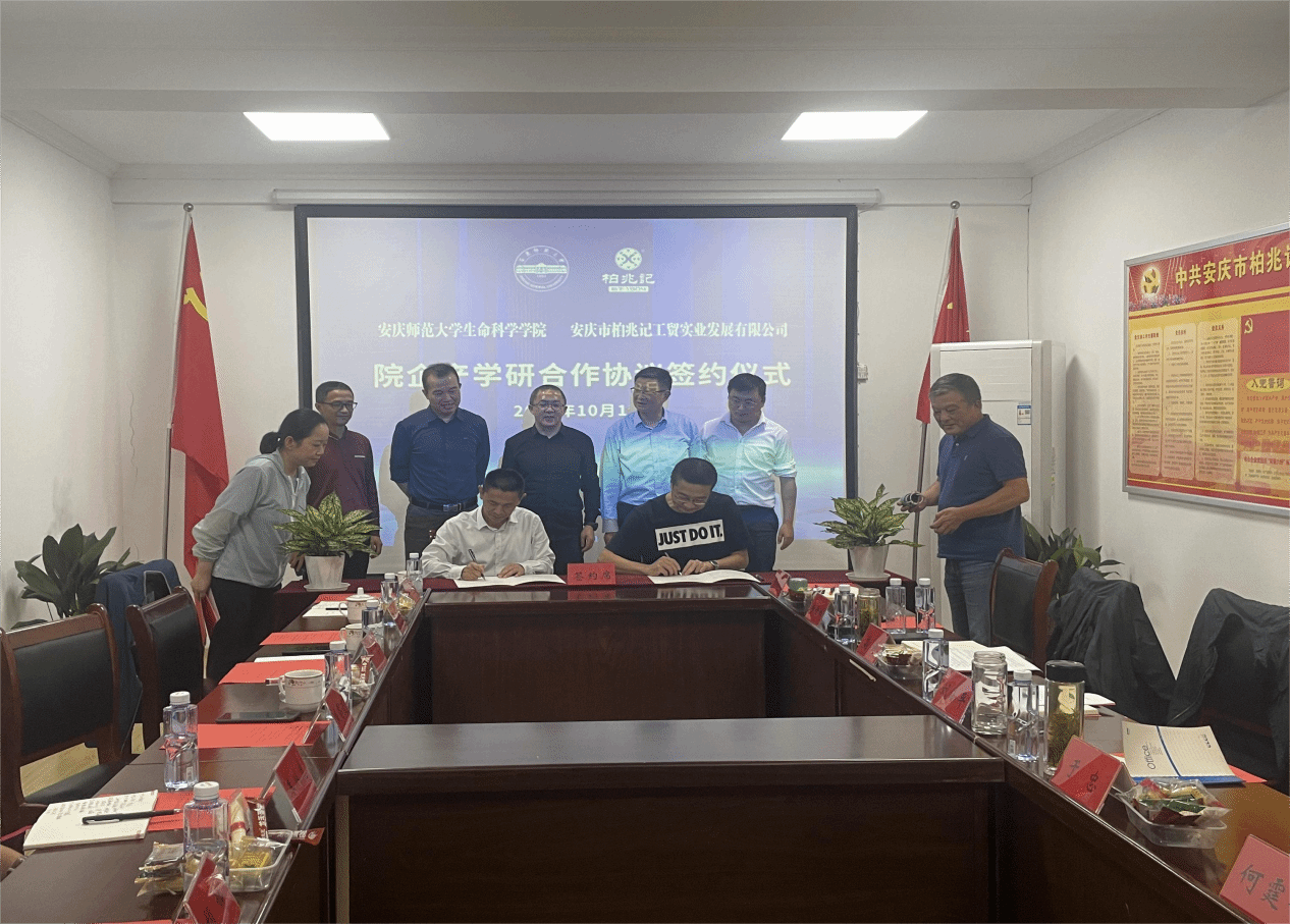 朱昌流代表学院与安庆柏兆记工贸实业发展有限公司董事长于忠签订了院企产学研合作框架协议。
