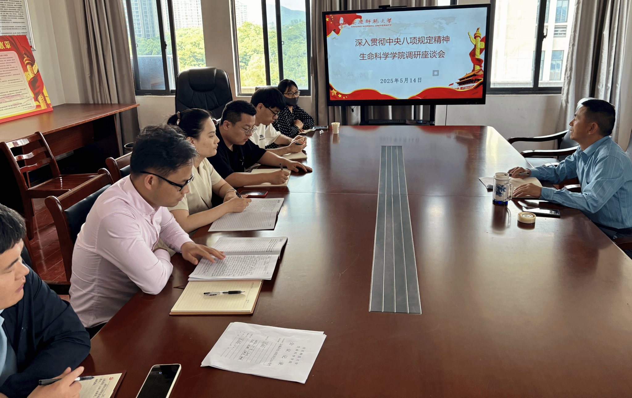 5月12日至14日,酷爱成人网 领导班子分别深入到各党支部开展深入贯彻中央八项规定精神学习教育调研,全体党员和教师代表出席座谈会。