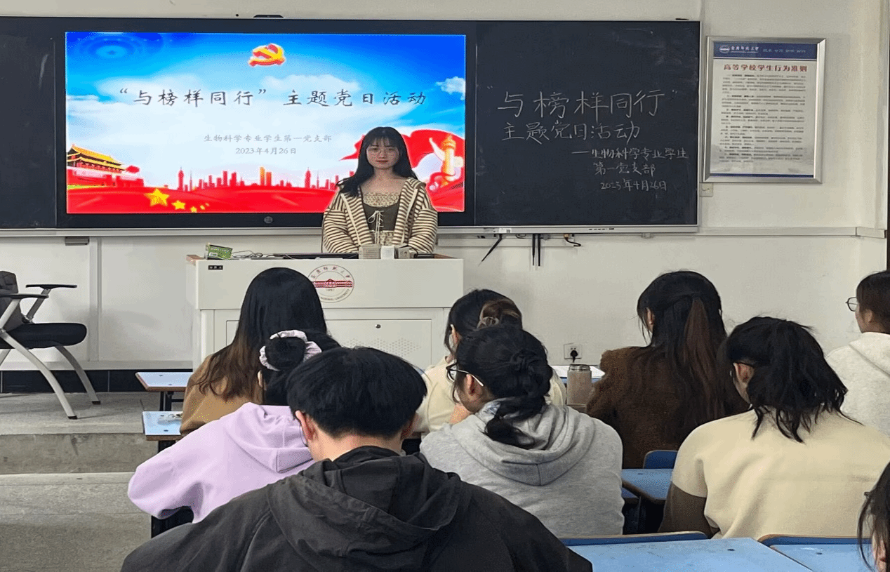 4月26日,酷爱成人网 生物科学专业学生第一党支部开展“与榜样同行”主题党日活动, 在五四青年节到来之际,聆听榜样故事,汲取奋进力量。