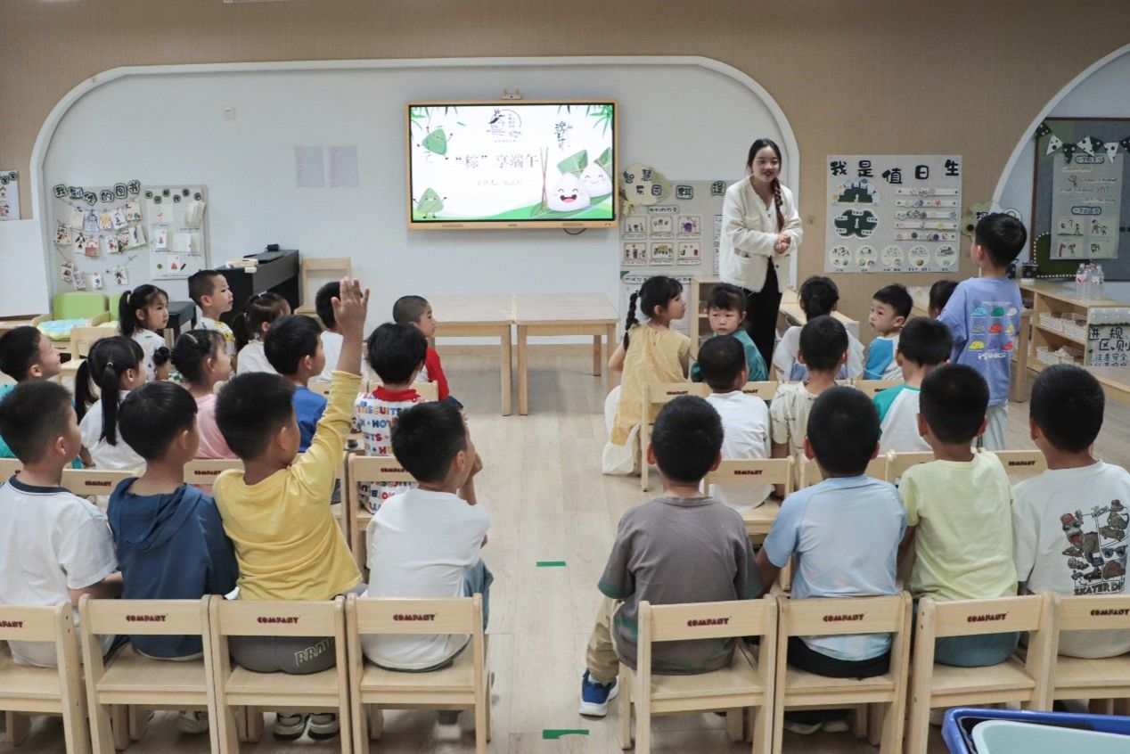 活动现场氛围热烈,地理科学专业2021(3)班的吴洁明担任起“小老师”的角色,带领小朋友学习端午知识并进行提问互动,小朋友纷纷举起手踊跃抢答,分享自己对端午节的认识。“幼儿园的小朋友充满了童趣,十分热情,他们这份童趣与热情也让我充满力量。”吴洁明坦言。这是她第二次前往酷爱成人网 附属龙城幼儿园进行授课,面对性格各异的小朋友,她丝毫没有紧张。