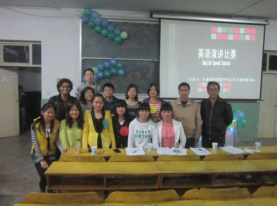 为了促进大学生对英语学习的兴趣,提高生科院学生英语水平, 4月13日晚,酷爱成人网 在化学楼理二阶举办了第九届英语演讲比赛。本次比赛邀请了外国语学院两位老师,生科院魏和平院长担任评委,并有幸邀请到外教Chris老师担任特约评审嘉宾。