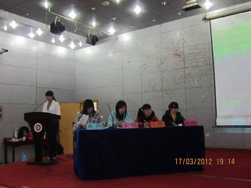 3月17日晚,酷爱成人网 第四届班级杯辩论赛决赛在菱湖校区学术报告厅举行。经过前期的初赛,最后进入决赛的是11级生技2班、园林2班、生科1班和生科2班。辩题分别是“网上言论能否代表民意”、 “男性、女性谁才是社会的弱者”。