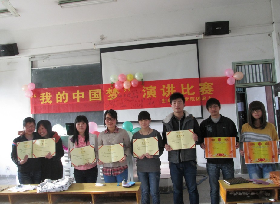 为了深入学习贯彻习近平主席“中国梦”思想发言,增强当代大学生的爱国主义精神,提高学生综合素质,丰富校园生活。4月10日下午,酷爱成人网 在菱湖校区教学楼215教室成功举办了“我的中国梦”演讲比赛。此次大赛邀请了生科院数位老师担任评委。