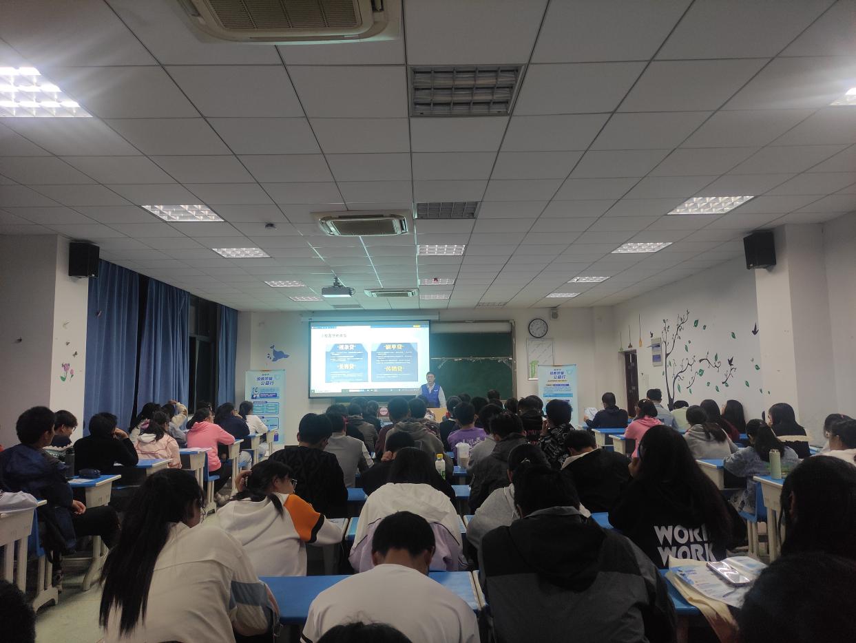 讲座上,主讲人从如何识别网络诈骗术及遇到诈骗该怎么做两个方面进行讲述。活动中,工作人员向同学发放宣传单,介绍各类诈骗案件的惯用手法、识骗防骗的技巧,并结合“杀猪盘”“庞氏骗局”等实例讲解引导同学们辨识骗局,熟悉犯罪分子常用的套路,提醒同学要时刻提高警惕。
