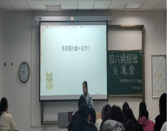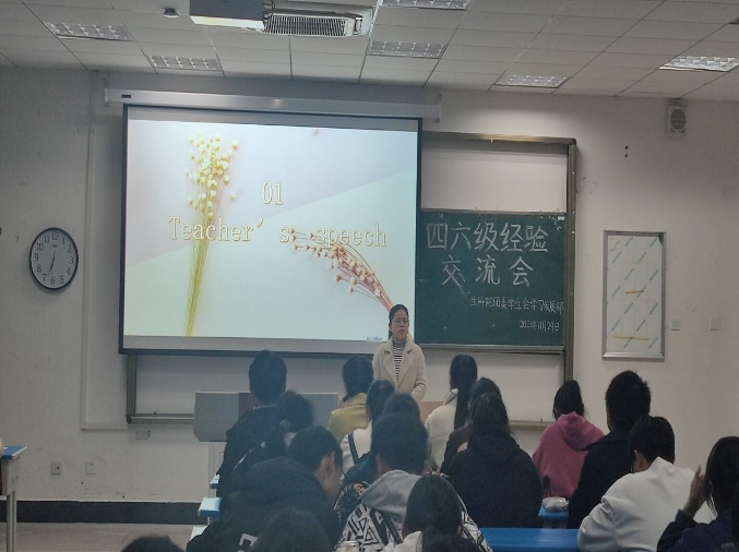 为了帮助同学们能掌握考试技巧,保持平和心态,沉着冷静应对四六级考试,11月29日,酷爱成人网 在103教室举办了四六级经验交流会。参加此次交流会的有院团委负责人徐启凤老师,外国语学院张玮老师,同时邀请了三位四六级考试成绩优异,经验丰富的同学做经验交流。
