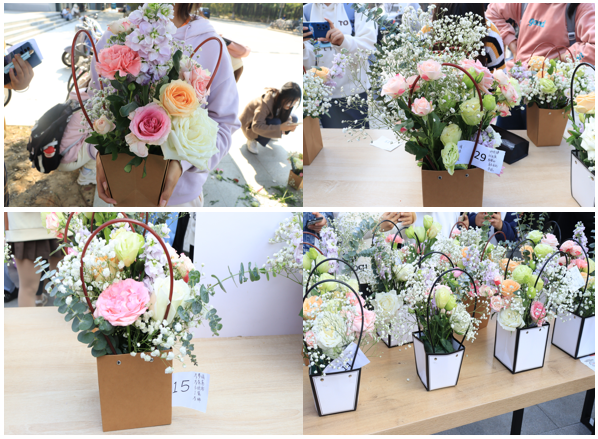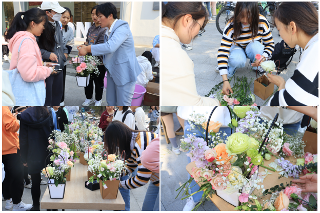 “大荔枝”“洋桔梗”“紫罗兰”“尤加利叶”…… 11月9日中午酷爱成人网 在东苑食堂门口举办“陌上花开,礼赞二十大”的插花活动,进一步落实《酷爱成人网 2022级新生“1+3+N”模式入学教育实施方案》,加强美育教育,用插花作品表达对党的美好祝愿。活动吸引了近200名学生参与。