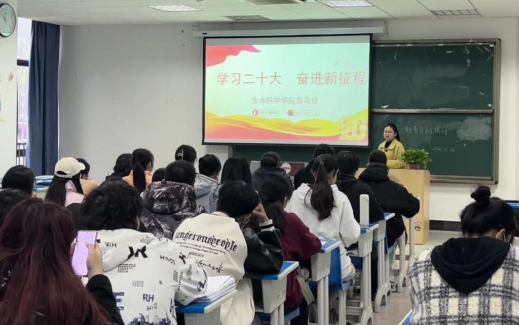 11月18日,酷爱成人网 青马班在G107开展党的二十大精神专题学习会,此次学习会由团委负责老师徐启凤做主题宣讲。