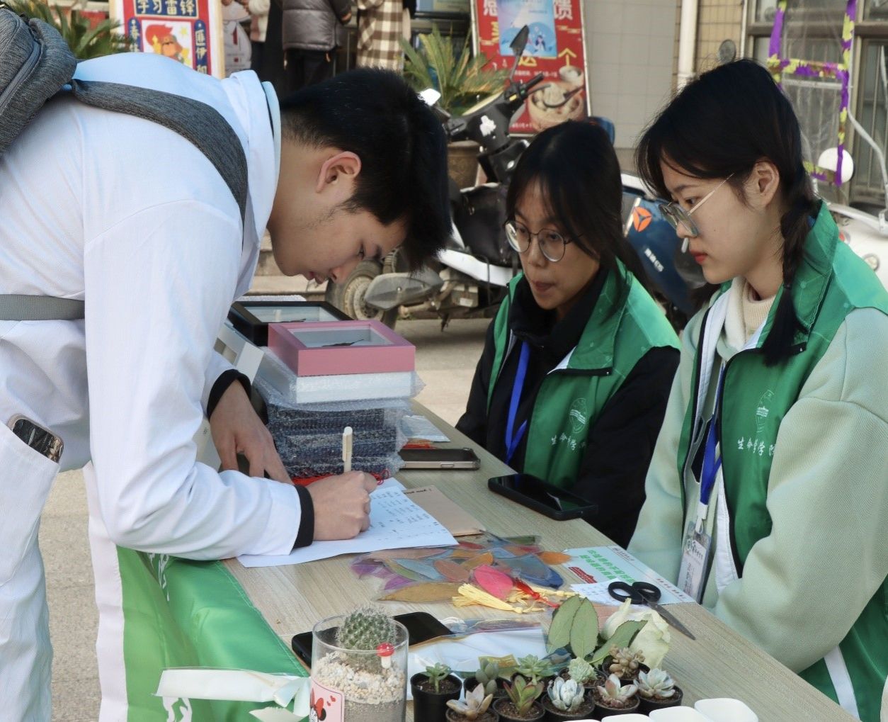 三个蝴蝶标本、两盆绿植,学校教师汪老师花费了近120元,成为摊位上的“开门大顾客”。他表示,因小女儿喜欢蝴蝶标本,他特地购买了三种类型的蝴蝶标本。“这是一个双向的、有益的活动,既可以丰富学生的专业知识,也可以帮助孩子获得快乐。”