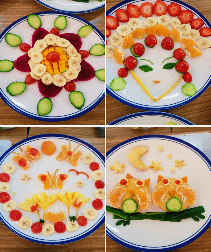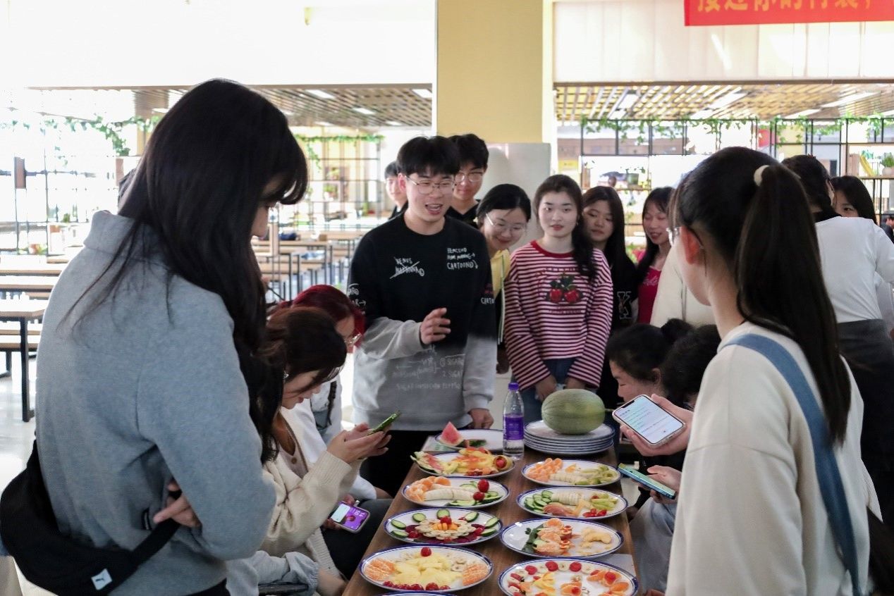 苹果厚切成片,两瓣橘子成为翅膀,黄瓜切条变为树枝,转眼间,两只正在树枝上栖息的猫头鹰便出现在盘子中。4月3日,生命科学协会举办水果拼盘大赛,进一步推动科学知识、劳动教育和美育教育深度融合,80名学生齐聚学校西苑食堂二楼,共鉴水果拼盘之美。