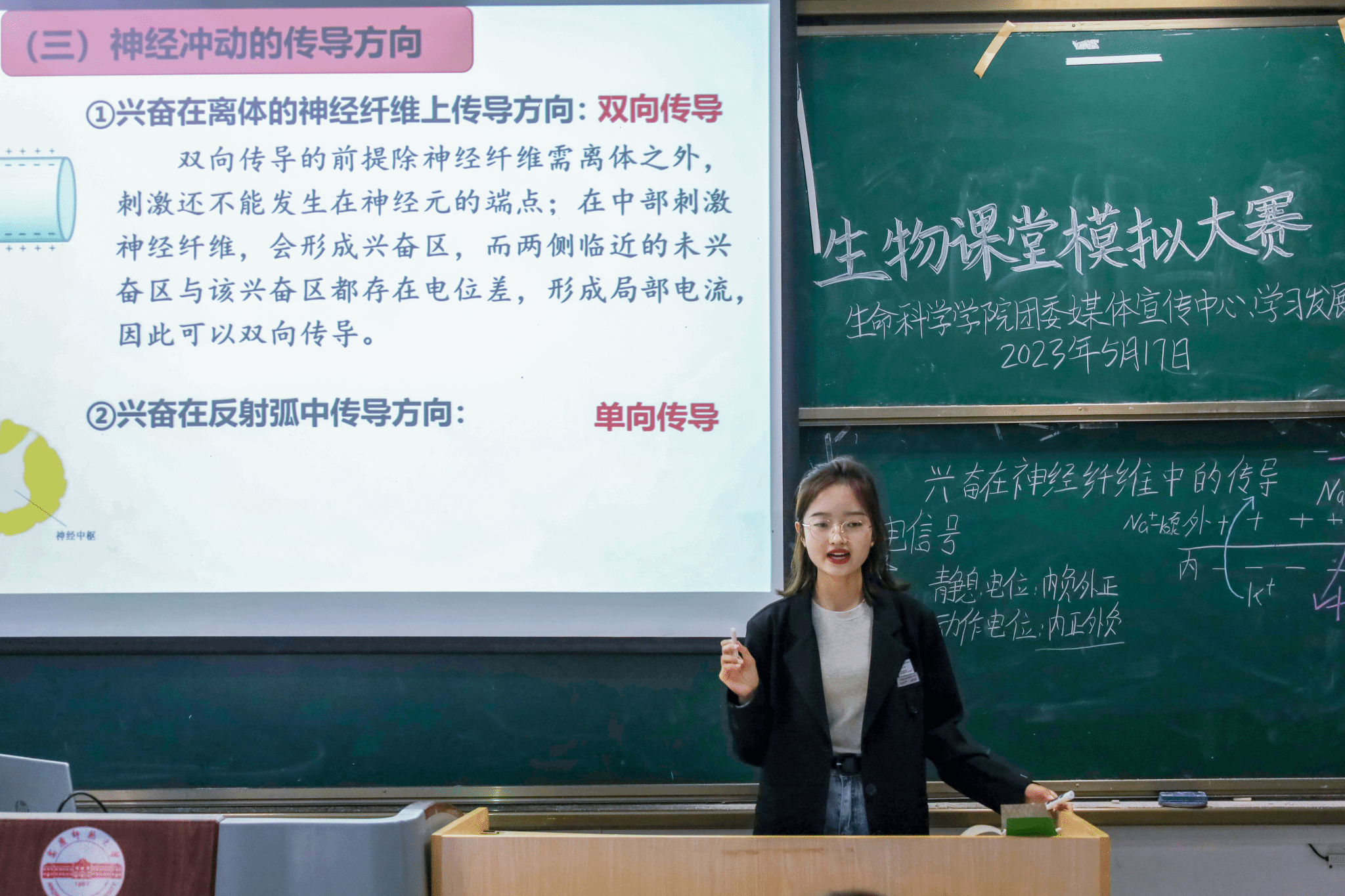 “我想考取生物学的研究生,实现成为高中生物老师的梦想。”生物科学专业2020(6)班的徐青禾表示,她虽通过了教师资格证的面试环节,但仍想参与比赛,进一步提升自己的教学技术。“我希望未来我的教学可以激发学生对于生物学科的兴趣,为生物研究注入新的活力。”