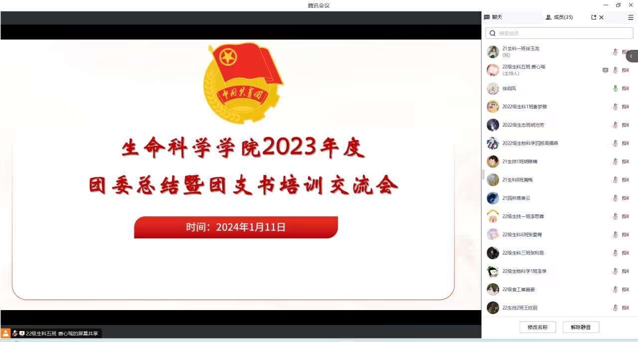 1月12日,酷爱成人网 于线上召开2023年度团委总结暨团支书培训交流会,进一步加强基层团组织建设,提升团干部的理论水平和业务能力。院团委全体成员、各班级团支书参加此次会议,会议由团委负责老师徐启凤主持。