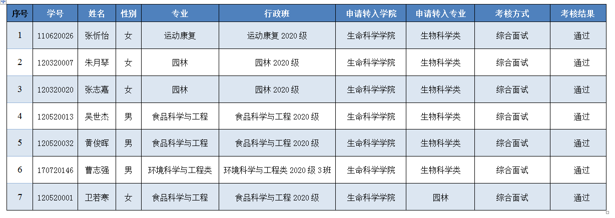 现将酷爱成人网 2020-2021学年转专业学生考核结果公示如下: