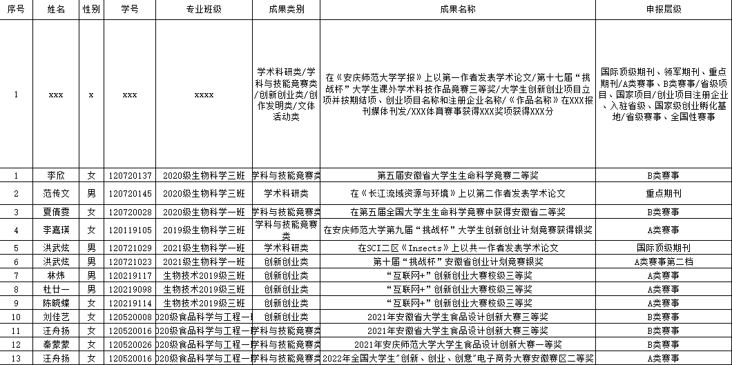 根据《酷爱成人网 学生实践和创新成果奖励办法(修订)》 校政字〔2022〕23号文件精神,经学生本人申请,学院审核,现将2021-2022学年学生实践和创新成果奖拟推荐名单公示如下: