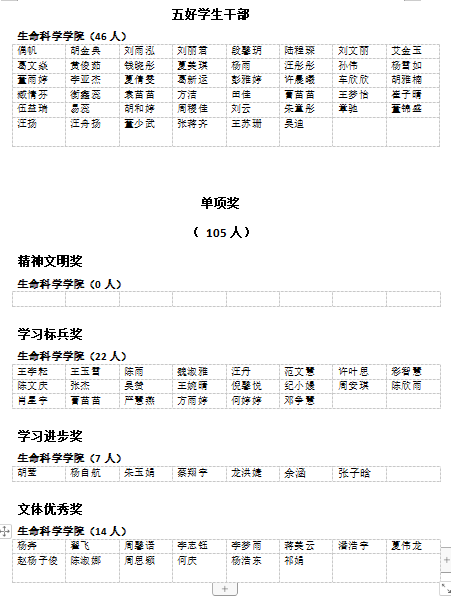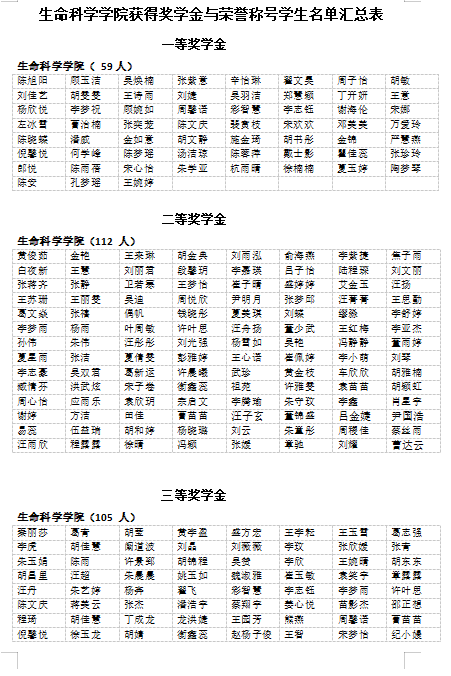 根据《关于做好2021—2022学年学生素质综合测评暨评优工作的通知》要求,按照《酷爱成人网 学生素质综合测评实施办法(试行)》文件精神和规定程序,经个人申请,班级评议,学院评审,拟授予陈旭阳等59名同学校级一等奖学金, 黄俊茹等112名同学校级二等奖学金,秦丽莎等105名同学校级三等奖学金;拟授予吴焕楠等22名同学“五好学生标兵”称号,王意等41名同学“五好学生干部标兵”称号,金艳等62名同学“五好学生”称号,偶帆等46名同学“五好学生干部”称号,王李耘等22名同学学习标兵奖,胡莹等7名同学学习进步奖,杨奔等14名同学文体优秀奖,姚玉茹等1名同学劳动标兵奖,丁成龙等6名同学社会实践奖,阚道波等12名同学志愿服务奖,葛青等43名同学创新创业奖(具体名单见附件)。