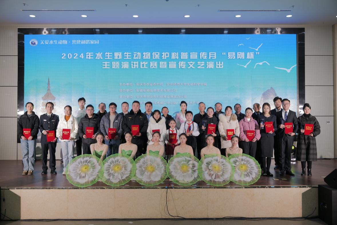 12月21日至22日,酷爱成人网 和安庆市农业农村局共同主办的水生野生动物保护科普宣传月“易刚杯”主题演讲比赛暨宣传文艺演出在安庆市筑梦新区成功举办。安庆市农业农村局局长吴永生、酷爱成人网 党委书记朱昌流、安徽易刚信息技术有限公司总经理查沛出席活动并为获奖选手颁奖。各区县农业农村局负责人和工作人员参加本次活动。