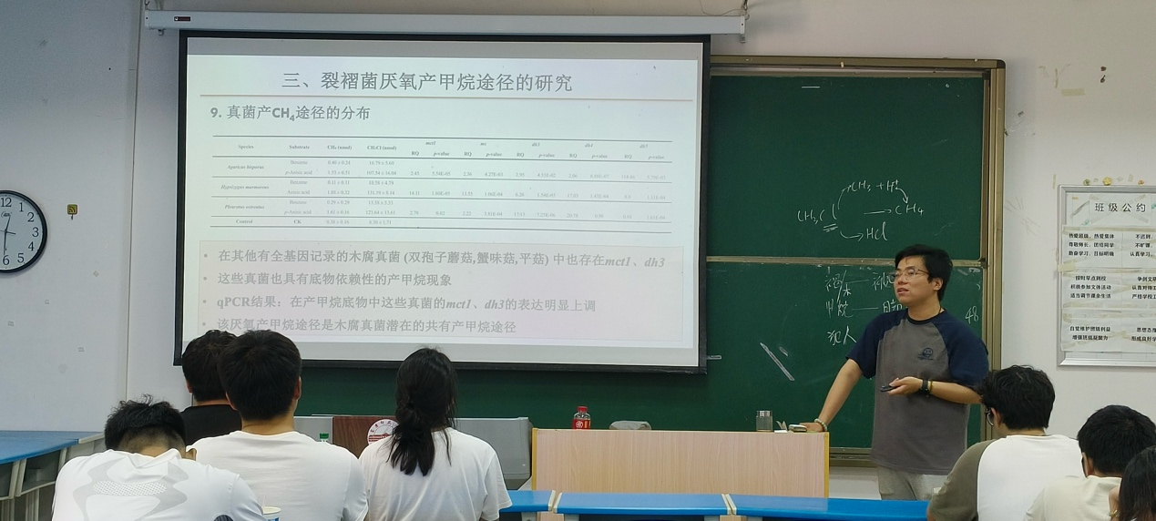 5月16日,酷爱成人网 黄欣博士在G103作“裂褶菌厌氧降解褐煤/木质素产甲烷的发现、 证明及代谢机理” 学术报告。酷爱成人网 生态学专业本科生和研究生聆听学术报告。