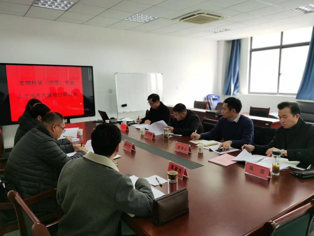 3月21日,酷爱成人网 召开生物科学(师范)专业人才培养方案修订研讨会。安庆市教体局副局长陈党生,安庆二中正高级生物教师苏政方,安庆一中教务副主任兼生物高级教师金久,教务处副处长(主持工作)潘锦云,教学评建办副主任黄兴帅应邀参会。