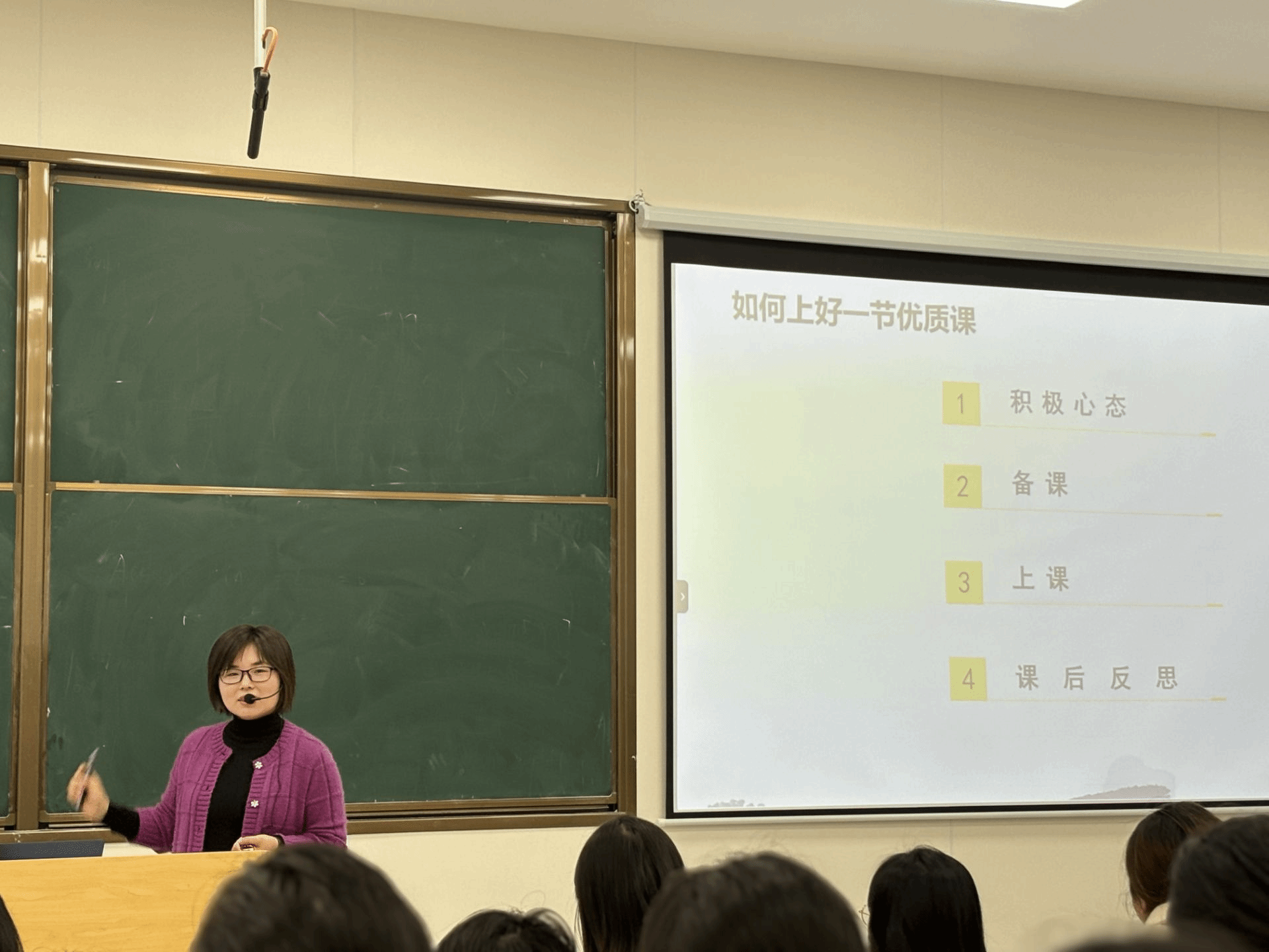 施晓丽老师从积极的心态谈起,指出教师应感谢机遇、积极把握,具备积极的教学心态。随后,从备课、上课和课后反思等方面介绍了如何上好一节优质课,提出一节优质课应包含新颖的情境引入、适当的信息技术、简单的教学教具、精致的课件设计、出色的视频制作、真切的学生活动、精彩的思维碰撞和课堂总结等八个亮点。讲座结束后,施晓丽与在场师生进行了深入交流。