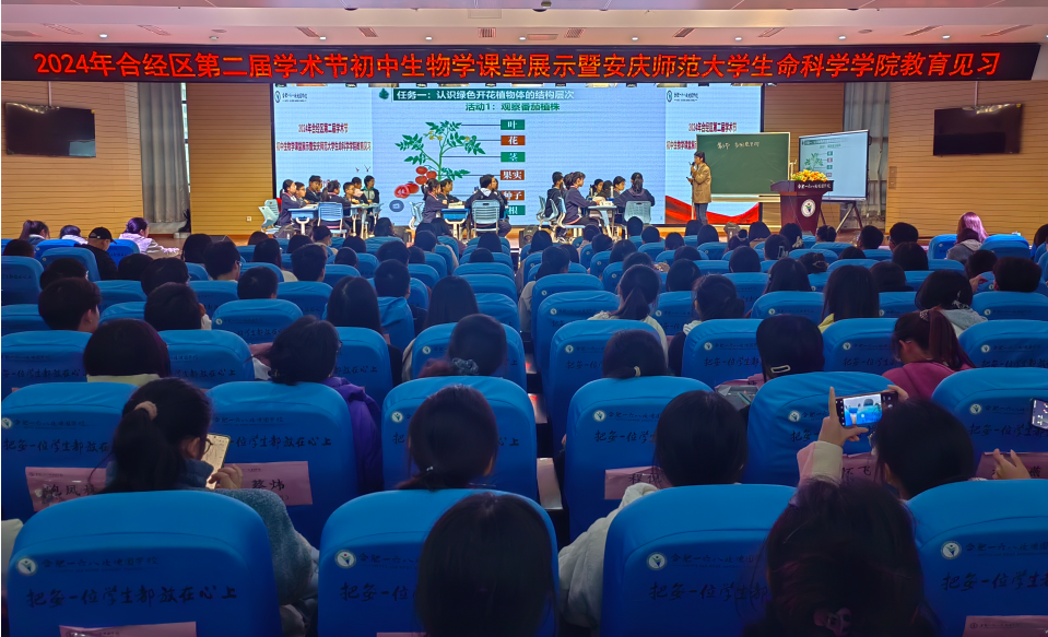 活动伊始,学生们观看了合肥一六八玫瑰园学校教育集团东校的宣传视频。随后,生物组侯媛媛老师对初中生物学教学内容“多细胞生物”进行了公开授课。同学们现场观摩,体验了一节生动的探究性学习课堂,感受了基于中学生核心素养培养需求的生物学课堂教学节奏及氛围,并在授课结束后共同探讨了生物学课堂教学中的一些常见问题,让师范生了解一线教师教学的真实状况。
