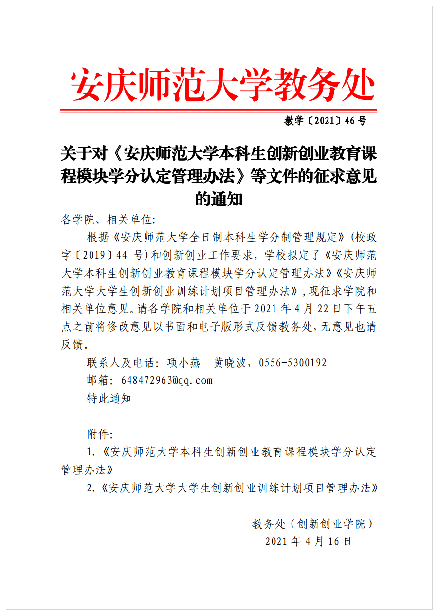 关于对《酷爱成人网 本科生创新创业教育课程模块学分认定管理办法》等文件的征求意见的通知