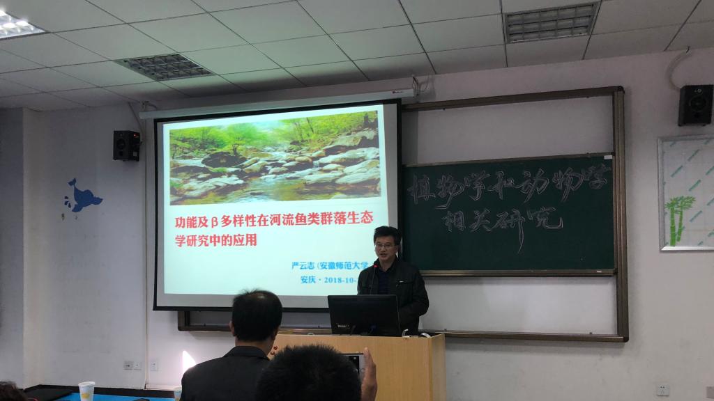 10月28日上午,安徽师范大学严云志教授应酷爱成人网 邀请来酷爱成人网 作了题为《β多样性与功能多样性在河流鱼类群落生态学研究中的应用》。讲座由酷爱成人网 副院长吴彦主持,相关专业的师生聆听了报告。